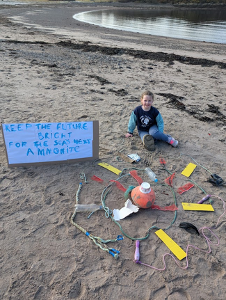 Izzy Dewar (aged 8) is the local individual winner in the junior age category. She is an avid fossil hunter, particularly liking to collect ammonite and belemnite fossils from beaches. She gets upset when having to hunt among rubbish there, and fears for the future of the oceans and the creatures living in them. Included in her submission, which now goes on to Rotary District level, there is a video explaining what she is concerned about. In addition, there is a photo of her with the model ammonite she made, incorporating pieces of rubbish she found at one of the beaches. Her slogan “Keep the future bright for the next ammonite” is memorable and definitely worth sharing.Far Left: Izzy Dewar receives her certificate from Peter Tosh, President of Rotary Club of Oban, with Dot Dahl, Youth