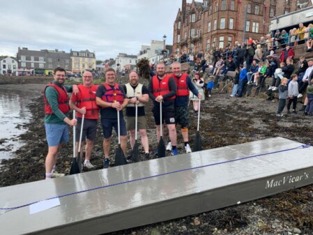 Teams from AutoGlass, The Oban Distillery, Oban Vets, Ora Rosa, Dunstaffnage Marina, Oban Distribution Services, Oban and Lorne RFC, Scottwood, Oban Sea Cadets, and Oban Recovery took to the sea and valiantly navigated each of their incredibly designed and built rafts. Some were more sea-worthy than others , but fun was had by all.