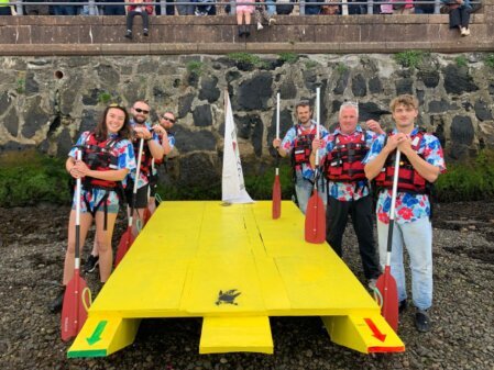 Many people were involved in making the Raft Race 2025 a success. We were able to raise over £1300 thanks to the hard work of MacQueen Brothers, George Street Fish Restaurant, Kay at Bid4Oban, Robert Hamilton for photography, Riccardoughs, Jasmine’s Cakes, Vicki Mackenzie of Argyll and Bute Council, the Oban Sailing Club, and the Lions Club of Oban.